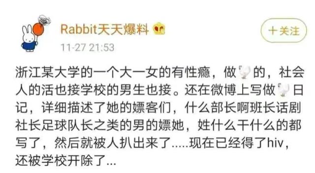 兩天前,浙江農(nóng)業(yè)大學(xué)的一個(gè)大一女學(xué)生被爆患上性癮,一直在進(jìn)行性交易,并把“交易日記”發(fā)布到微博上,引起眾人的圍觀。