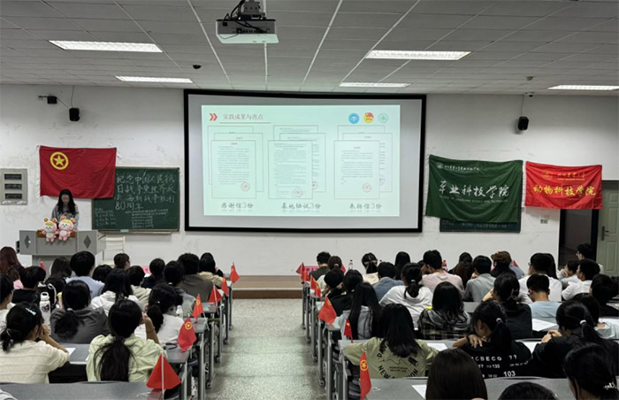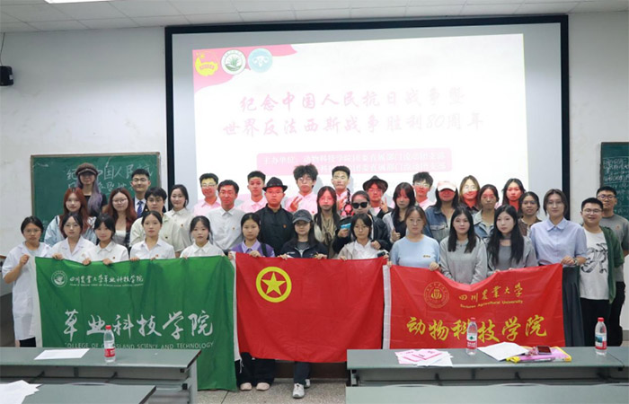 為了深入貫徹學(xué)習(xí)習(xí)近平總書記關(guān)于銘記歷史、珍愛和平、開創(chuàng)未來的重要講話精神,進(jìn)一步引導(dǎo)團(tuán)員青年傳承紅色基因、厚植家國情懷,10月11日,四川農(nóng)業(yè)大學(xué)草業(yè)科技學(xué)院團(tuán)委直屬部門流動團(tuán)支部聯(lián)合動物科技學(xué)院團(tuán)委直屬部門流動團(tuán)支部及四個小班團(tuán)支部,在成都校區(qū)4-A202教室共同舉辦了“紀(jì)念中國人民抗日戰(zhàn)爭暨世界反法西斯戰(zhàn)爭勝利80周年”主題示范性班團(tuán)活動;顒油瑫r面向25級新生,通過邀請草院全體大一新生到場共同學(xué)習(xí)來深化本次活動引領(lǐng)學(xué)習(xí)效果并擴(kuò)大影響力。
