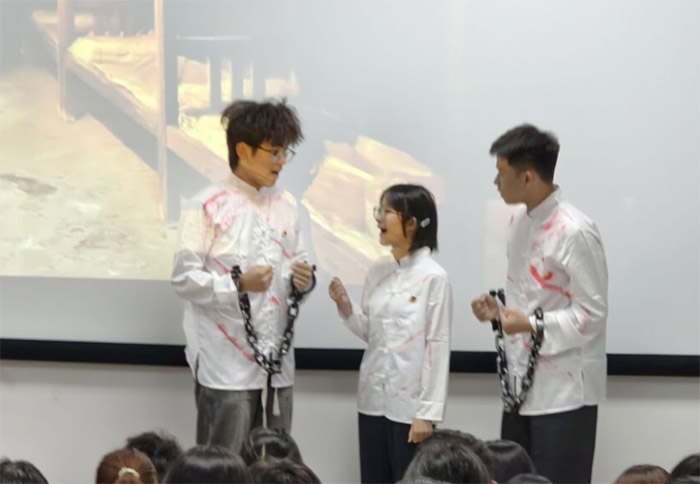 演繹傳薪火,行動踐初心 草院學(xué)子通過演繹《百年校史礪初心,青春實(shí)干顯擔(dān)當(dāng)》話劇,多維度展現(xiàn)校史中的熠熠閃光。校友江竹筠在渣滓洞堅(jiān)守信仰、與獄友制作五星紅旗的場景;任正隆教授突破國際基因壁壘、培育“川農(nóng)小麥”的科研歷程;賈紀(jì)原學(xué)長“創(chuàng)青春”國家級金獎項(xiàng)目《藏糧于草》的實(shí)踐故事。通過藝術(shù)化演繹,青年們感悟川農(nóng)精神的傳承與時代價值,在真情共鳴中堅(jiān)定理想信念,立志把青春奮斗融入強(qiáng)農(nóng)興農(nóng)的生動實(shí)踐,讓校史精神在新時代煥發(fā)出賡續(xù)不息的青春光芒。