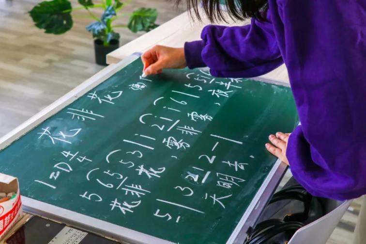 師范生書寫著自己的板書,筆端平穩(wěn)。