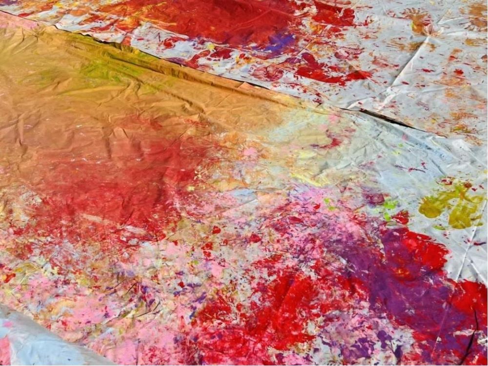 繪畫(huà)藝術(shù)治療是以繪畫(huà)藝術(shù)活動(dòng)為手段,對(duì)身心障礙者進(jìn)行輔助性治療的方法,幫助孤獨(dú)癥兒童穩(wěn)定情緒、抒發(fā)情感,改善認(rèn)知能力,建立社會(huì)意識(shí)和社會(huì)適應(yīng)性。2024年7月21日,“半夏鹿鳴”志愿服務(wù)隊(duì)與星星的孩子們共同進(jìn)行了一場(chǎng)“身體繪畫(huà)”——腳踩畫(huà)和手指畫(huà)。志愿者引導(dǎo)孩子們雙手雙腳沾上多彩顏料,在畫(huà)布上隨心繪制圖案。