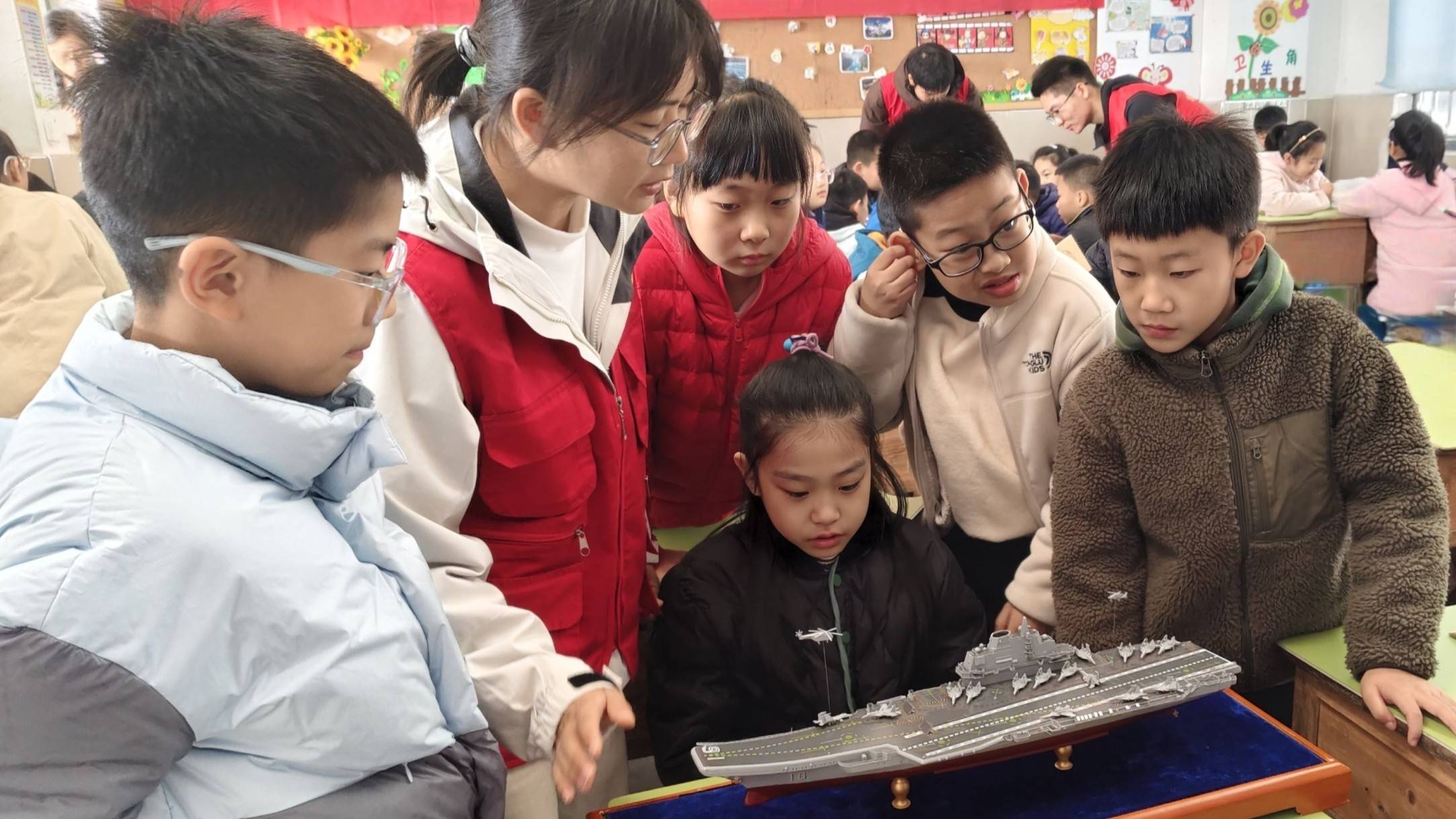 在船舶模型展示環(huán)節(jié),小朋友們展現(xiàn)出了對(duì)船舶的濃厚興趣,他們紛紛表示要親手制作一艘屬于自己的小船。隨后,胡益帶領(lǐng)小朋友們開(kāi)始了扭扭棒小船的制作,教室里充滿(mǎn)了歡聲笑語(yǔ)。盡管有成功也有失敗,但小朋友們并沒(méi)有氣餒,因?yàn)樗麄兿嘈,總有一天能夠親手駕馭真正的“玩具”。