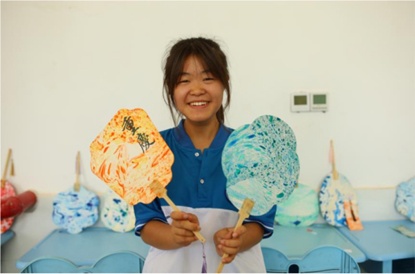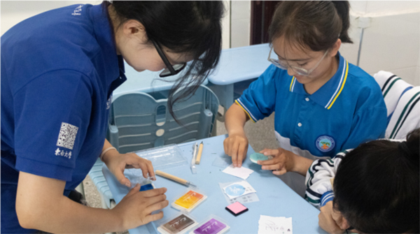 支教團成員精心設(shè)計課程目標,認真制訂教學計劃,悉心組織課堂教學,開設(shè)篆刻、藍曬、扎染、繩藝等13門多元化非物質(zhì)文化遺產(chǎn)課程,讓學生近距離感受傳統(tǒng)文化項目的魅力,豐富學生的校園生活,發(fā)展學生的興趣特長,促進學生全面發(fā)展,讓學生學有所樂、學有所獲,以期推進“五育并舉”和“五育融合”,賦能學生未來可持續(xù)發(fā)展。