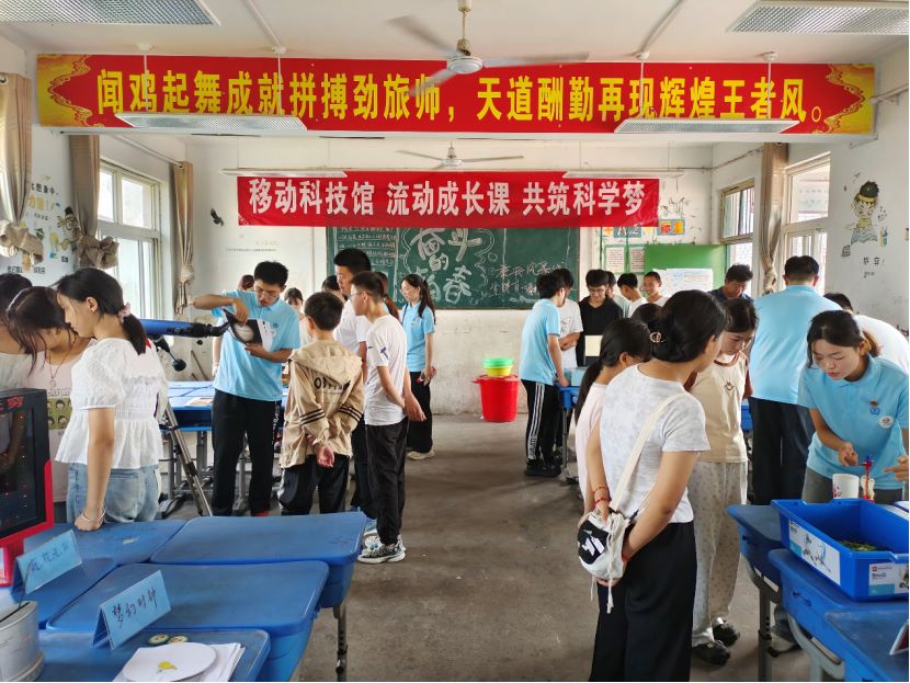 據(jù)悉,物理學院“移動科技館”在周口市扶溝縣開展志愿科普活動,旨在通過“玩中樂、玩中學、玩中悟”的形式,提升青少年對科學技術的認知與感知,激發(fā)他們的創(chuàng)新潛能,為加快建設科技強國貢獻青春力量。