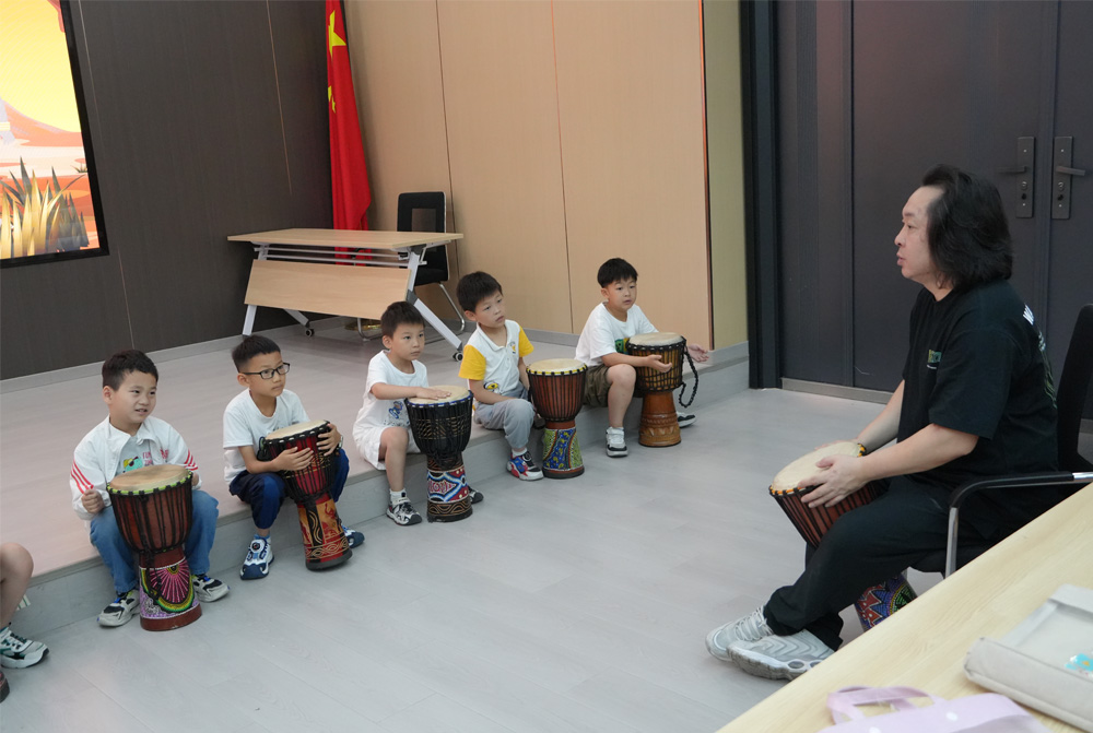 隨著課程的深入,教學(xué)現(xiàn)場(chǎng)氛圍愈發(fā)濃厚。孩子們用鼓聲抒發(fā)情感,用音樂(lè)打開(kāi)心靈的窗戶(hù),將童年的快樂(lè)與夢(mèng)想融入每一個(gè)音節(jié)之中。非洲鼓的韻律和感染力,不僅讓孩子們感受到了音樂(lè)的魅力,更讓他們對(duì)非洲文化有了更深的理解和尊重。