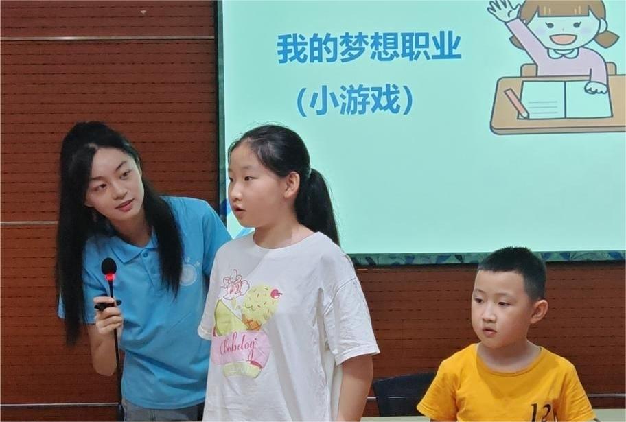 為培養(yǎng)少年兒童的綜合素質(zhì),幫助他們更好地發(fā)掘自身潛力,讓小朋友們可以展現(xiàn)風(fēng)采,放飛夢(mèng)想。重慶師范大學(xué)經(jīng)濟(jì)與管理學(xué)院“經(jīng)管小課堂”公益托管志愿服務(wù)隊(duì)于7月16日在重慶市璧山區(qū)華龍社區(qū)黨群服務(wù)中心,面向社區(qū)托管班的小朋友們開展公眾演講活動(dòng)并鼓勵(lì)他們上臺(tái)演繹自己的夢(mèng)想職業(yè)。