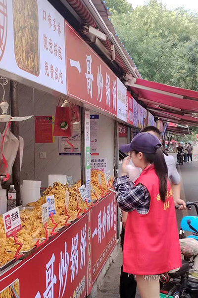進入八大局便民市場,人頭攢動,熱鬧非凡。實踐隊隊員與當?shù)氐臄傊、市民進行了深入的交流,了解市場的日常運營情況,以及淄博爆火后對市場帶來的變化。他們向隊員們講述了八大局的歷史變遷、文化特色以及他們在這里的生活點滴。從中了解到,八大局不僅是淄博市民的購物天堂,更是他們社交、休閑的重要場所。這里匯聚了各種各樣的商品,從傳統(tǒng)的小吃、手工藝品到現(xiàn)代的服飾、電子產(chǎn)品,應有盡有。并且實踐隊隊員們隨機找了來游玩的游客進行采訪并填寫問卷調(diào)查。在調(diào)研過程中,實踐隊隊員們特別關注到了八大局內(nèi)的書畫文化。如今扇面書畫熱已經(jīng)席卷了整個市場,成為了一個獨特的文化現(xiàn)象。許多書畫家在此擺攤設點,為游客提供現(xiàn)場作畫的服務。這種將傳統(tǒng)文化與現(xiàn)代市場相結(jié)合的方式,不僅讓更多的人了解和喜愛上了書法和繪畫,也為傳統(tǒng)文化的傳承和發(fā)展注入了新的活力。
