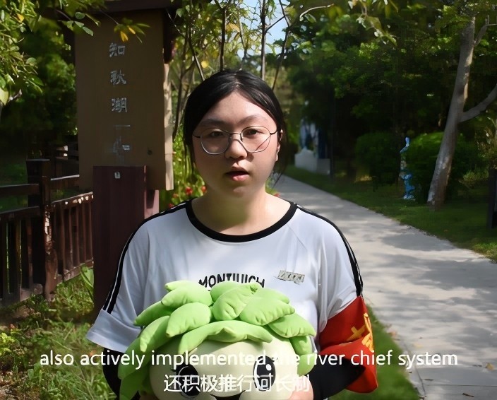 除以上活動(dòng)形式之外,外語“河小禹”們還充分發(fā)揮英語專業(yè)的優(yōu)勢(shì),在現(xiàn)場錄制了英文宣傳視頻。視頻中詳細(xì)介紹了莆田河流治理的故事,激發(fā)更多的人關(guān)注和參與保護(hù)母親河的熱情。