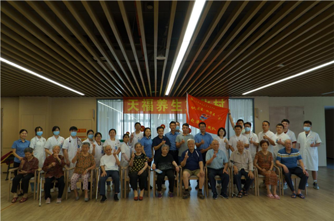 7月11日下午,實踐隊一行實地走訪了漳州市第三批市級醫(yī)養(yǎng)結(jié)合試點單位——天福養(yǎng)生文化村。文化村建有養(yǎng)生大樓、康養(yǎng)中心、室外活動廣場等建筑配套及文化景觀,設(shè)有養(yǎng)老床位800張,有多種房型,配有獨立衛(wèi)生間、負(fù)壓吸引、傳呼系統(tǒng)等適老化設(shè)施設(shè)備,采用國際創(chuàng)新理念康復(fù)式新養(yǎng)老模式,實現(xiàn)專業(yè)護理、傳統(tǒng)康復(fù)、機構(gòu)養(yǎng)老、居家式養(yǎng)老的統(tǒng)一。在老年活動中心,實踐隊員們依靠臨床醫(yī)學(xué)專業(yè)優(yōu)勢,為居住其中的老人們開展了集中愛心義診及健康科普活動,傾聽老人們的需求,細(xì)心檢查老人的身體狀況,為老人們聽診、測血壓、測血糖等,并詳細(xì)地為老人解釋檢查結(jié)果以及給出健康建議,提升健康知曉率,宣揚健康生活理念,踐行健康生活方式。