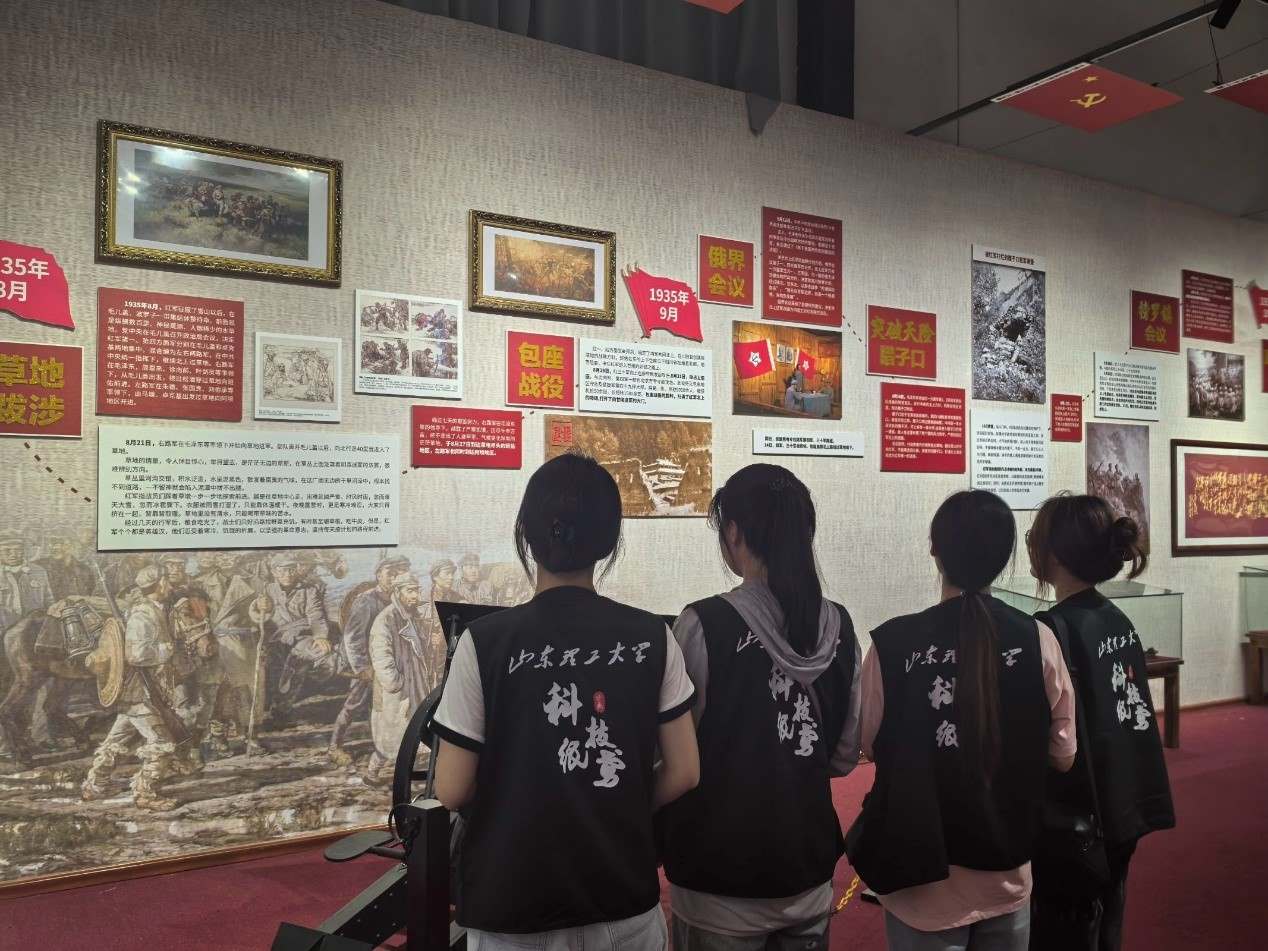 7月20日,科技紙鳶實(shí)踐團(tuán)全體成員前往濟(jì)南市商河縣長征精神紀(jì)念館,學(xué)習(xí)經(jīng)典紅色長征精神。在紀(jì)念館內(nèi),實(shí)踐團(tuán)成員們?cè)趯I(yè)解讀人員的帶領(lǐng)下,深入了解了長征這一偉大歷史事件的背景、歷史原因、戰(zhàn)略轉(zhuǎn)折點(diǎn)以及最終的勝利會(huì)師。