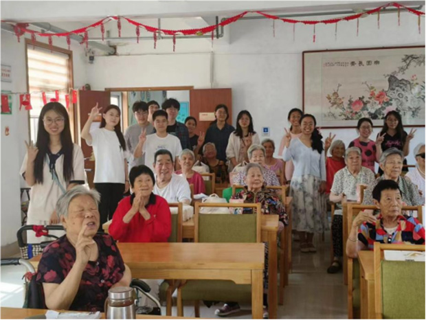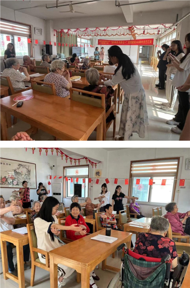 開展實踐前,考慮公寓里多數(shù)老人坐輪椅行動不便,經(jīng)常一整天都不怎么活動,隊員們在專業(yè)教師的悉心指導(dǎo)下,利用扎實的專業(yè)知識,設(shè)計了一套適合老年人日常鍛煉的康復(fù)動作,這些動作既簡單易懂又實用有效;顒訒r,隊員們耐心地為老人們演示每一個動作,并詳細(xì)解釋其要領(lǐng),確保每位老人都能清晰理解并正確模仿。志愿者們根據(jù)每位老人的身體條件和個性化需求,進(jìn)行了細(xì)致的一對一指導(dǎo),他們不厭其煩地講解、示范,并精心糾正每個動作,以確保每位老人都能在安全、舒適的環(huán)境中達(dá)到最佳的鍛煉效果,老人們也表示簡單易學(xué),愿意積極參與,增強(qiáng)身體免疫力。在教授動作的同時,志愿者們還耐心細(xì)致的了解老人們的身體健康情況,講解如何合理飲食、健康鍛煉、按時用藥,提高老人們的健康意識和自我保健能力。歡聲笑語充滿了活動現(xiàn)場,溫暖著在場的每一個人。隨后,同學(xué)們又分組進(jìn)行老年公寓的日常服務(wù)工作,清潔小組的同學(xué)們不辭辛勞地清掃樓梯,為老人們創(chuàng)造一個干凈、整潔的居住環(huán)境。資料整理小組的成員則細(xì)心收集并整理老人們的日常生活資料,以便更深入地了解他們的生活習(xí)慣和需求,為提供更加貼心、個性化的服務(wù)打下堅實基礎(chǔ)。