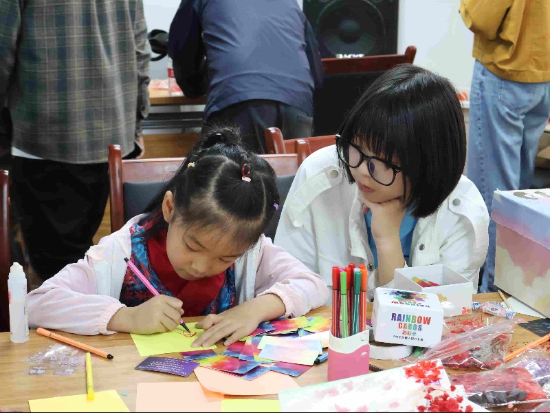另一邊的“彩虹卡”攤位卻只收到了幾張“煩惱卡片”;顒雍笪覀兇蜷_箱子查看,才發(fā)現(xiàn)這寥寥幾張卡片上寫的也不是“煩惱”,而是夢想、希望與祝福。
