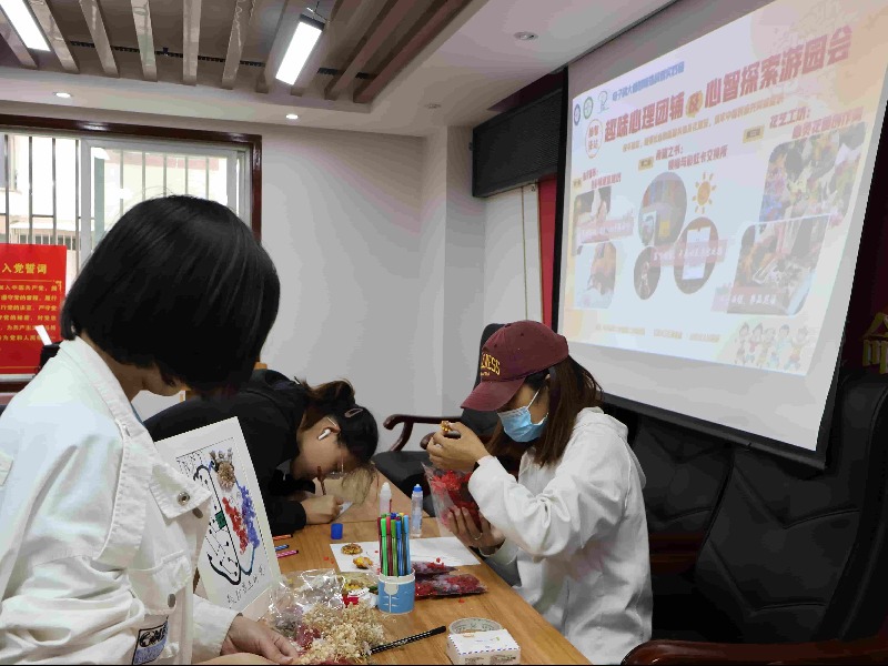 本次心理團輔游園會設(shè)置了花藝工坊——心靈花園創(chuàng)作間、心靈畫布——色彩情緒宣泄坊、希望之書——煩惱與彩虹卡交換所三個攤位。