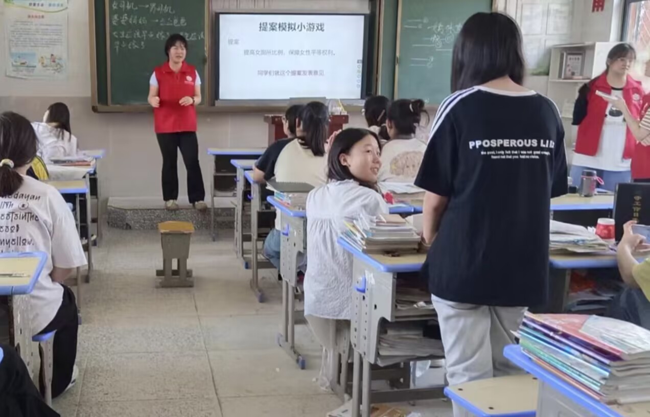 之后,模仿人大代表的提案,希望學(xué)生也能提出一些有益的提案,團隊成員設(shè)置“提高女廁所比例,保障女性平等權(quán)利”的提案,讓學(xué)生發(fā)表關(guān)于議案是否公平的意見。有同學(xué)就說“提高比例也得適度,不然還是不公平”等多種想法。接下來,團隊成員先引導(dǎo)學(xué)生判斷哪些語言為不文明用語,學(xué)生們提出了一些生活中遇到的不文明用語,團隊成員對這些不文明用語進行解釋,讓留守兒童認識到不文明用語的危害,讓同學(xué)們在黑板上寫出自己在日常生活中聽到過或自己說過的臟話,并詢問他們是否知道這些臟話真正的意思,讓同學(xué)們回答自己在什么情況下會聽到或說出這些臟話,以及為什么用這些詞語。最后團隊成員通過視頻提供“如何使用文明用語發(fā)泄不滿或表達情感”的方法,引導(dǎo)留守兒童使用正確、合理的方式維護自己的利益。