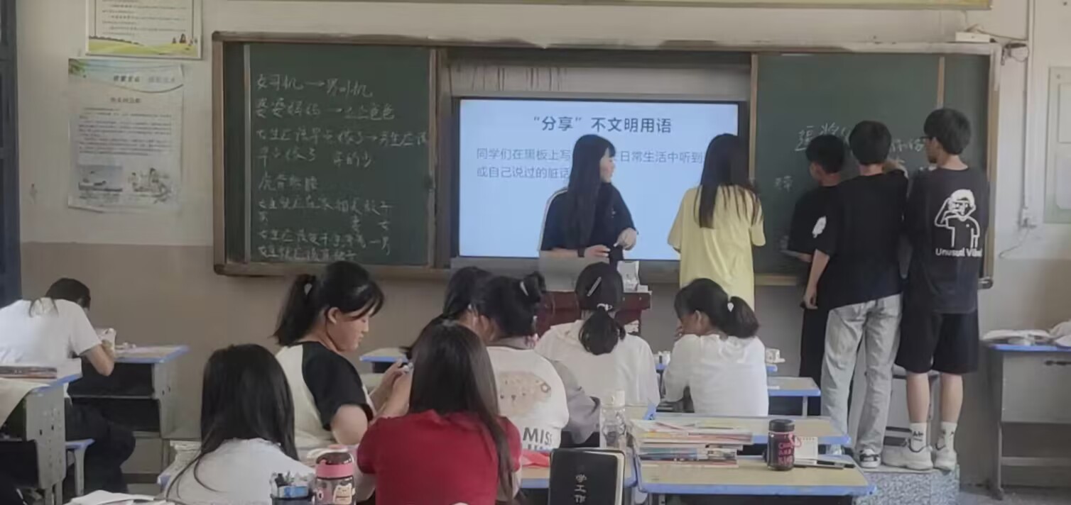 2024年7月12日,安徽省淮北師范大學(xué)“青山綠水繪新圖,沃土豐年譜華章--‘四圖’共繪蒙城鄉(xiāng)村振興‘斑斕畫卷’暑期“三下鄉(xiāng)”社會實踐團隊赴安徽省亳州市蒙城縣壇城鎮(zhèn)壇城中學(xué),開展“文明用語小達人,禮貌新風伴我行”實踐活動。(通訊員:潘莎娜)在與學(xué)校負責人聯(lián)系之后,實踐團隊乘坐公交車于上午八點半到達壇城中學(xué),在負責人組織下,實踐團隊進行了“文明用語小達人,禮貌新風伴我行”的文明用語小課堂。