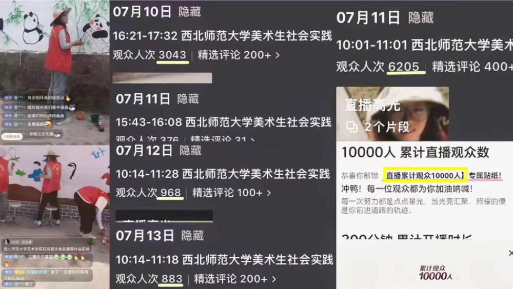 實(shí)踐團(tuán)通過直播的新形式,點(diǎn)亮美育的新課堂。通過直播講解手繪文化墻的過程、特點(diǎn)及效果,分享墻繪所用素材及創(chuàng)意設(shè)計(jì)等,以寓教于樂形式讓更多人參與墻繪制作,利用寸土空間將鄉(xiāng)村墻面建設(shè)成美育的新課堂,使更多人探索藝術(shù)的魅力,體驗(yàn)藝術(shù)的樂趣。同時(shí),利用多平臺(tái)直播吸引更多人在線觀看關(guān)山鄉(xiāng)的鄉(xiāng)村風(fēng)貌,進(jìn)一步挖掘關(guān)山鄉(xiāng)的余脈和周邊點(diǎn)綴的歷史、人文、自然等景點(diǎn),充分展示關(guān)山鄉(xiāng)鄉(xiāng)村美、產(chǎn)業(yè)興的美麗畫卷,以直播形式記錄并傳播關(guān)山鄉(xiāng)發(fā)展歷史、鄉(xiāng)村文化及精神風(fēng)貌,吸引更多人關(guān)注關(guān)山鄉(xiāng)的新發(fā)展、新變化。