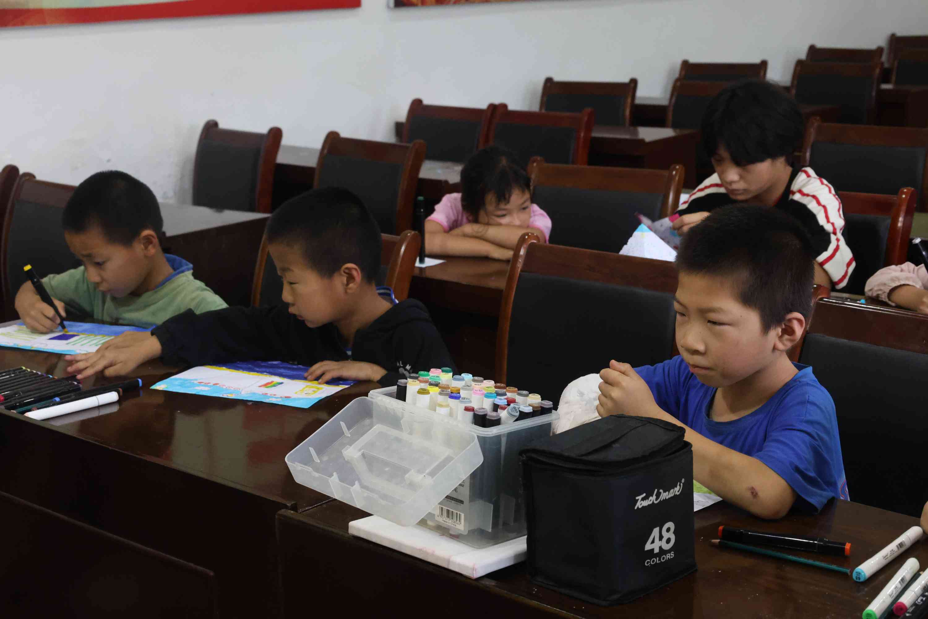 團(tuán)隊(duì)成員們了解到如今正值假期,很多鄉(xiāng)村的父母為了生計(jì)外出打工,導(dǎo)致許多小朋友缺少家長的陪伴。另外,受限于鄉(xiāng)村的教育條件,孩子們也缺少藝術(shù)的學(xué)習(xí)與熏陶。因此,實(shí)踐團(tuán)成員期望發(fā)揮自身的專業(yè)優(yōu)勢(shì),通過美術(shù)課程支教活動(dòng)來提升兒童的藝術(shù)審美,同時(shí)用孩子們的作品裝扮美麗鄉(xiāng)村,為鄉(xiāng)村振興注入新的藝術(shù)活力與文化內(nèi)涵。