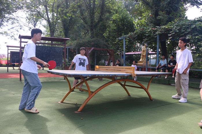 隨著下課鈴聲驟然響起,校園瞬間化身熱鬧的歡樂(lè)場(chǎng)。瞧,乒乓球桌旁,三五個(gè)同學(xué)圍作一團(tuán),他們的目光緊緊追隨著乒乓球的跳躍軌跡,時(shí)而歡呼,時(shí)而緊張。再看那邊,又有三五成群的同學(xué)聚在一起,湊近一瞧,原來(lái)是在下象棋,楚河漢界間盡展謀略的對(duì)決。還有跳繩的同學(xué),那繩子在空中快速飛舞,如同彩蝶翩翩;踢毽子的同學(xué),毽子在他們腳間輕盈起落,似靈動(dòng)的音符。此刻,校園里的熱鬧氣氛達(dá)到巔峰,處處洋溢著蓬勃的生機(jī),展現(xiàn)著青春的活力與無(wú)限可能!