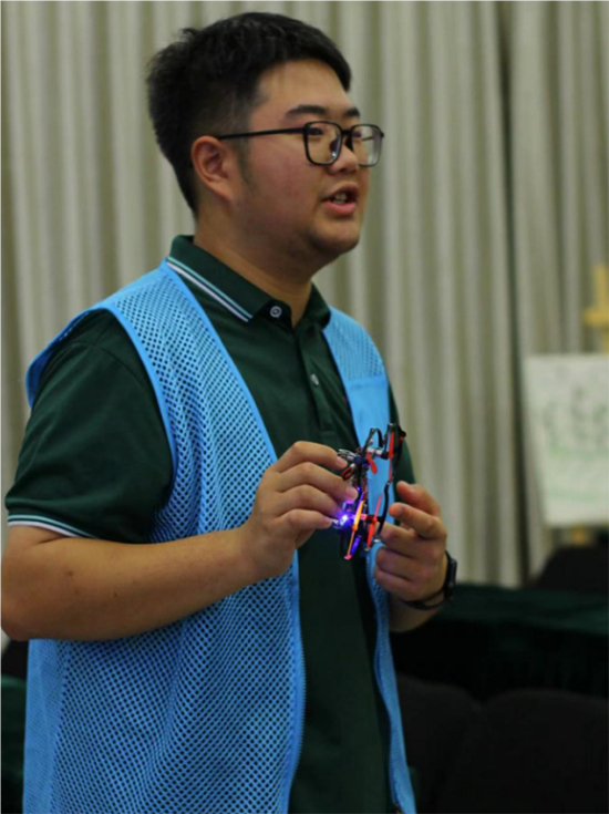 首先,開展了科創(chuàng)興國活動(dòng),向小朋友們展示了實(shí)踐團(tuán)隊(duì)員們自己做出來的遙控小飛機(jī),LED變換屏幕等,并加以解說,借此提高小朋友們對(duì)科創(chuàng)的興趣愛好,引導(dǎo)小朋友們樹立科技報(bào)國、永攀科學(xué)高峰的遠(yuǎn)大理想;