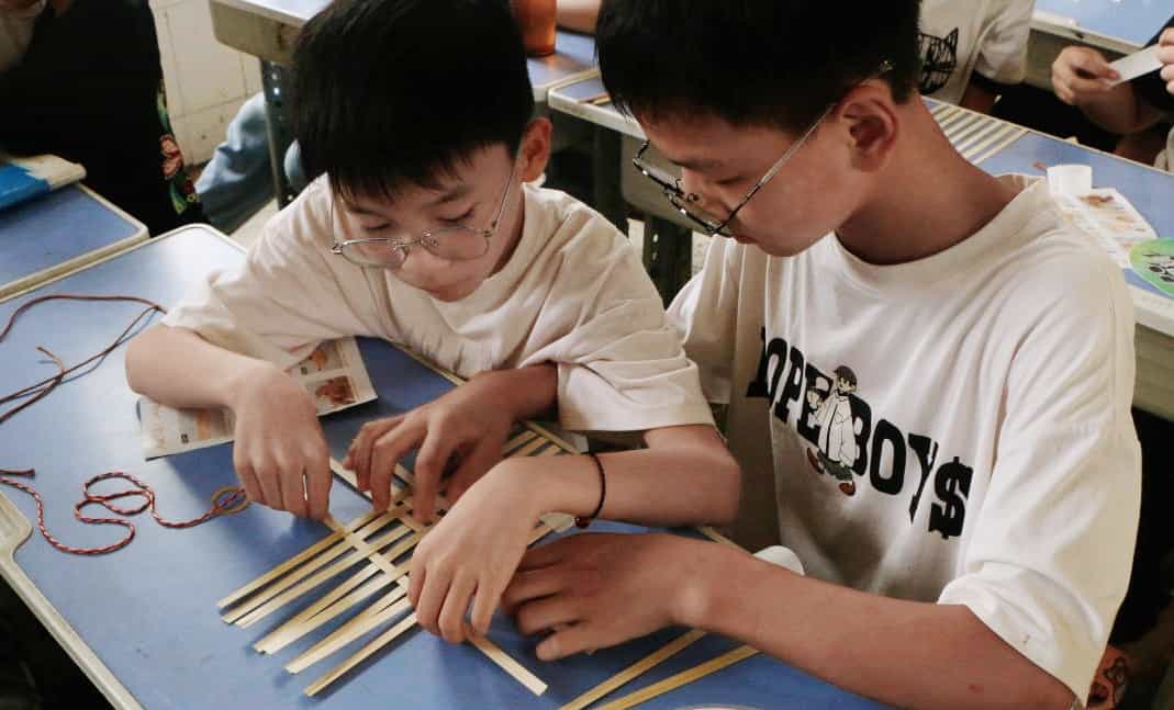 在張宇老師的耐心指導(dǎo)下,孩子們開始小心翼翼地編織著自己的龍舟。從最初的生疏笨拙,到后來的熟練自如,每一根竹篾條的穿插,每一條繩子的纏繞,都凝聚著孩子們對傳統(tǒng)文化的理解與尊重。他們或低頭沉思,或相視一笑,共同探索著竹編藝術(shù)的奧秘,享受著創(chuàng)作帶來的樂趣。