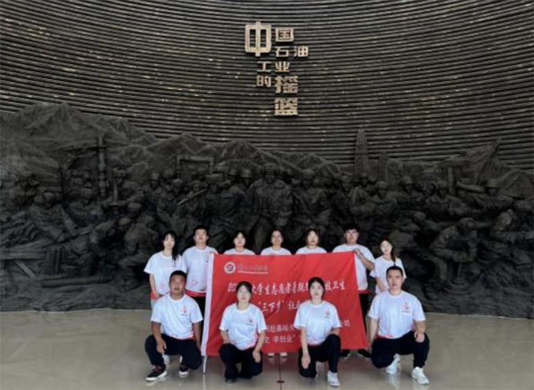 。▓D為實(shí)踐團(tuán)成員在玉門油田展覽館合影留念/張倩倩、李梅梅 攝)