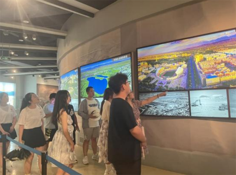 (圖為講解員帶領(lǐng)實(shí)踐團(tuán)參觀玉門油田展覽館/張倩倩 攝)