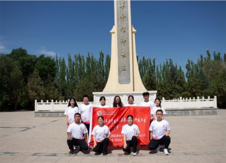 。▓D為實(shí)踐團(tuán)在酒泉烈士陵園合影留念/張倩倩、李梅梅 攝)