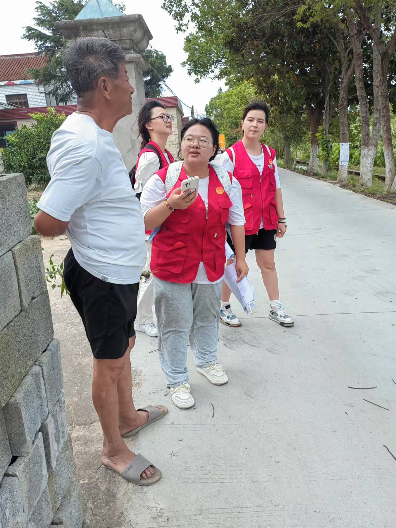 圖為海洋筑巢小隊正在與老人交談填寫調(diào)查問卷。林奇奇 攝
