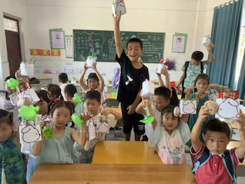 儀式當天,現(xiàn)場氣氛熱烈而溫馨。學生們用他們稚嫩的小手,相互贈送著自己精心準備的禮物,每一張笑臉都洋溢著純真的喜悅和對友情的珍視。而志愿者們也在這個特別的時刻,將滿載著愛與祝福的禮物一一送到學生們的手中;ベ浂Y物后志愿者和學生們一起通過擊鼓傳花、你劃我猜、傳聲筒等趣味小游戲,以及集體合唱、show time舞蹈展示和朗誦等時光重溫環(huán)節(jié)。稚嫩的童聲如同夏日的清泉,滋潤了每個人的心田,展現(xiàn)了無限的可能與希望。志愿者們與學生們攜手制作指紋畫作、寫寄語留念時,氣氛達到高潮。他們分享支教過程中的點點滴滴,有歡笑、有淚水、有挑戰(zhàn)、有收獲。崇陽星光志愿服務隊的成員們也在這期間與學生們共同回顧起這段難忘的時光。這些回憶如同指紋一般,深深地烙印在每個人的心中,成為他們人生中寶貴的財富。