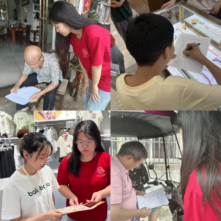 (圖為實踐團成員發(fā)放宣傳冊及開展問卷調(diào)查)