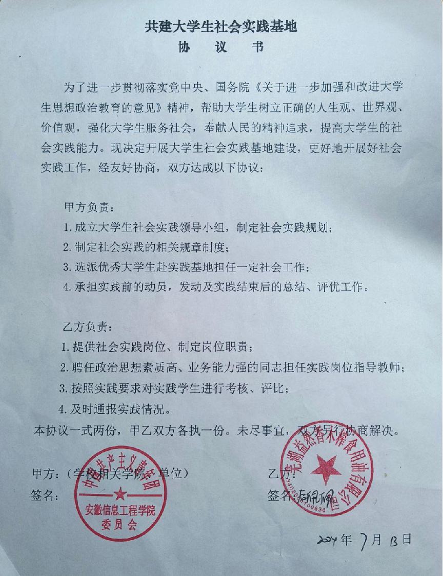 (圖為共建大學生社會實踐基地協(xié)議書內(nèi)容)