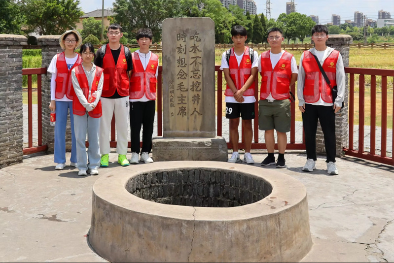 上午,實(shí)踐隊(duì)抵達(dá)了瑞金葉坪革命舊址群,這里曾是中華蘇維埃共和國(guó)的誕生地。在莊嚴(yán)肅穆的紅軍烈士塔前,實(shí)踐隊(duì)員們默哀致敬,深切緬懷為革命事業(yè)英勇獻(xiàn)身的先烈們。在葉坪的探訪中,實(shí)踐隊(duì)成員還有幸與當(dāng)?shù)鼐用窠涣鳎瑥乃麄兊目谥械弥,?dāng)年的長(zhǎng)征紅軍中不乏瑞金兒女的身影,而今的瑞金人民,很大一部分是紅軍的后代。這一發(fā)現(xiàn)讓隊(duì)員們更加深刻地理解了瑞金作為“共和國(guó)搖籃”的獨(dú)特地位,以及這片土地上流淌不息的紅色血脈。下午,實(shí)踐隊(duì)來到紅井,穿過群眾路線廣場(chǎng),途經(jīng)毛主席舊居和列寧小學(xué),隊(duì)員們最終來到那口承載著深厚歷史意義的紅井旁。井邊石碑上“吃水不忘挖井人,時(shí)刻想念毛主席”的題詞,瞬間喚起大家對(duì)小學(xué)時(shí)代學(xué)習(xí)這篇課文的記憶,也讓隊(duì)員們深刻體會(huì)到了黨與人民群眾之間的魚水情深。