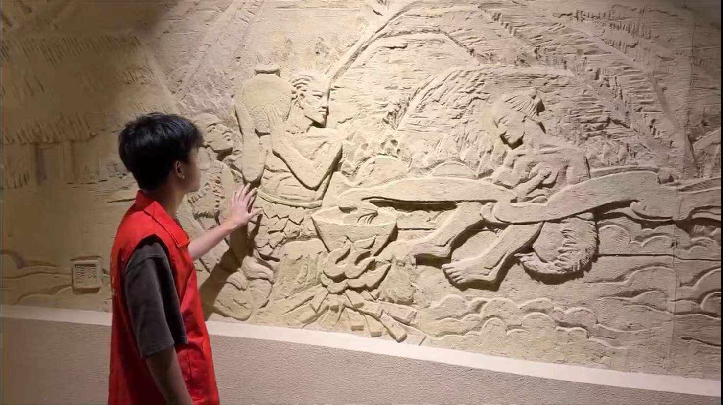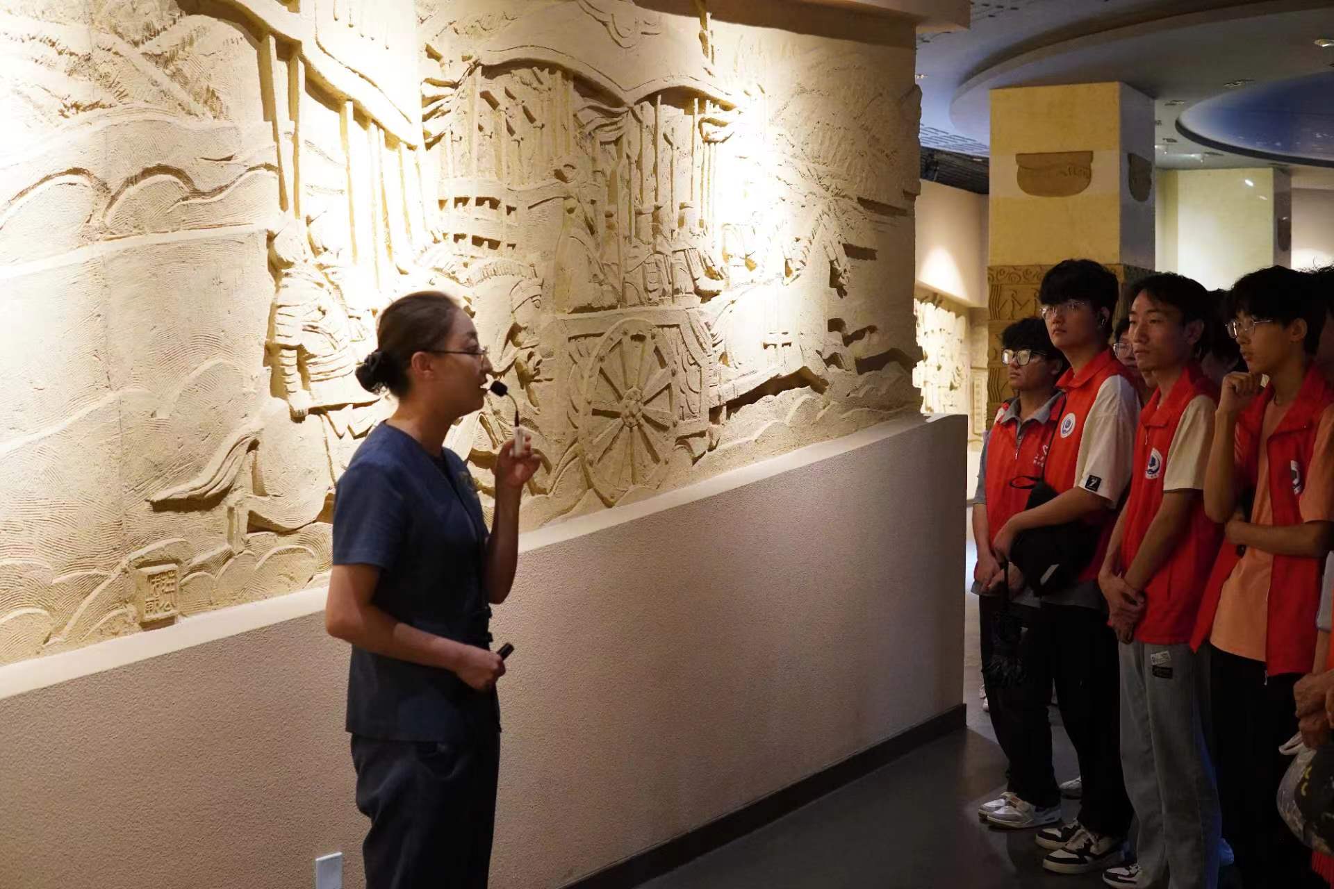 圖為實(shí)踐隊(duì)員觀看天水市博物館歷史浮雕墻,通訊員 覃德潔 攝