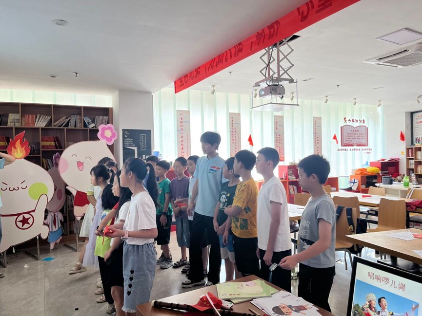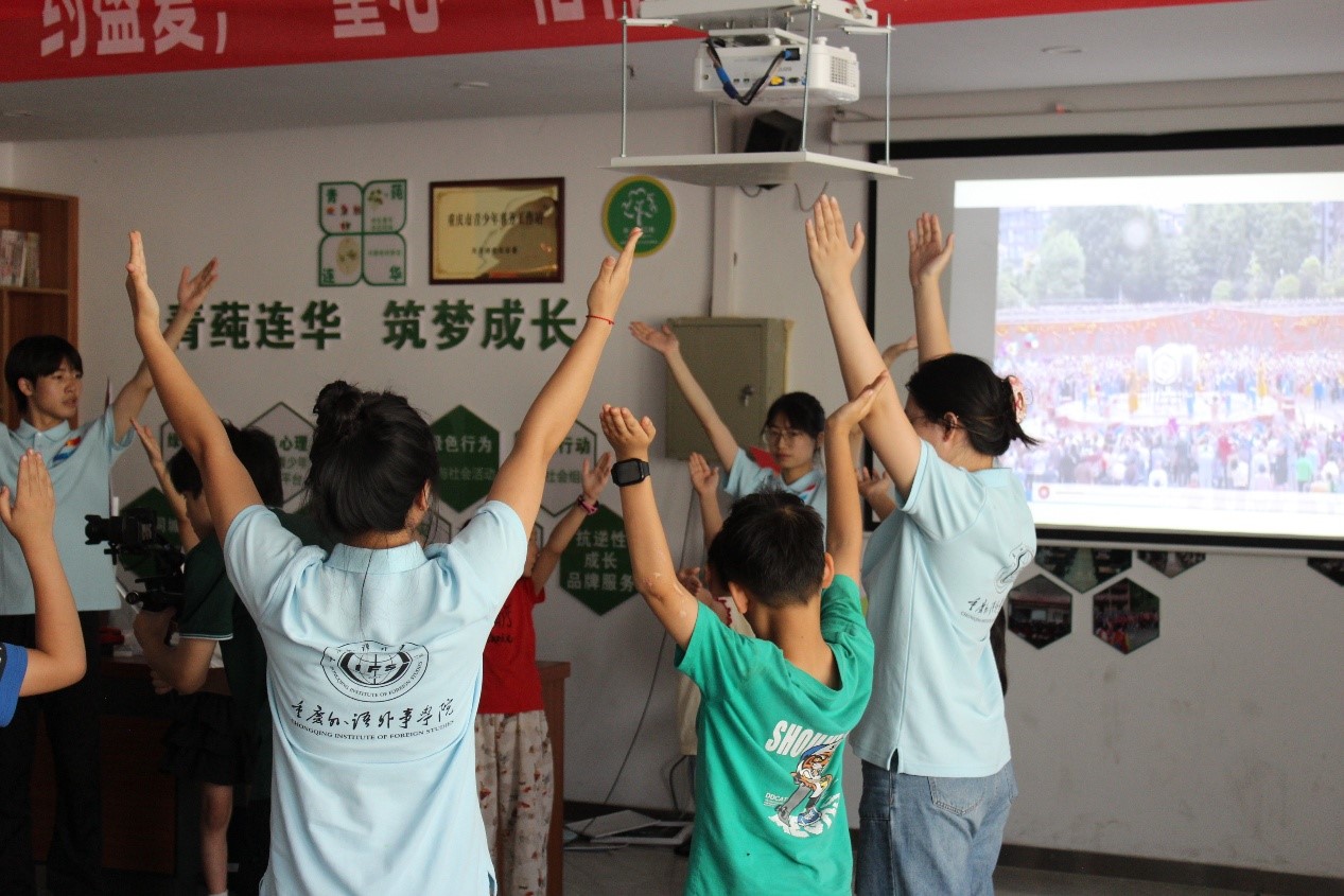 圖為宣講團(tuán)成員冉煜峰帶領(lǐng)孩子們一起唱啰兒調(diào)《太陽(yáng)出來(lái)喜洋洋》 劉珈辰 供圖