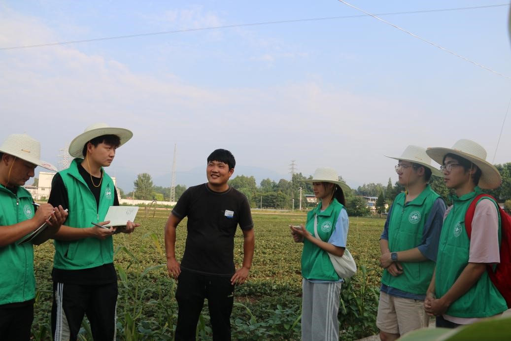 圖 2 實(shí)踐團(tuán)師生與農(nóng)戶交流草莓育苗技術(shù)問(wèn)題