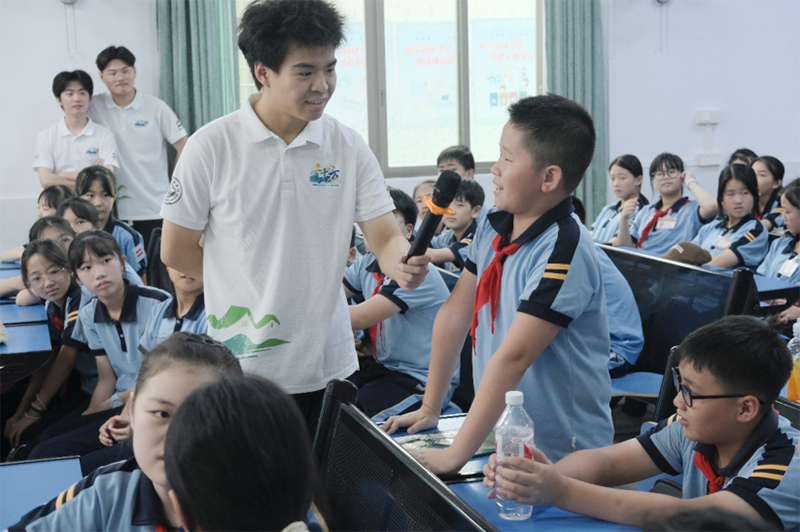。▽W(xué)生們積極與實(shí)踐隊(duì)互動(dòng))
