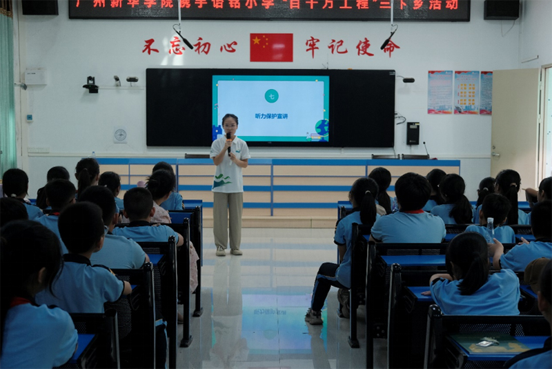 2024年7月13日-19日,由廣州新華學(xué)院眼視光學(xué)、聽力與言語(yǔ)康復(fù)學(xué)專業(yè)學(xué)生組成的視聽年華實(shí)踐隊(duì)(以下簡(jiǎn)稱“實(shí)踐隊(duì)”),為響應(yīng)國(guó)家衛(wèi)生健康委員會(huì)發(fā)布的“十四五”中關(guān)于全國(guó)眼健康和聽力健康的政策,結(jié)合所學(xué)專業(yè)知識(shí),為汕頭市龍湖區(qū)詒銘小學(xué)(以下簡(jiǎn)稱“詒銘小學(xué)”)的學(xué)生們進(jìn)行視力、聽力健康篩查和科普宣講活動(dòng)。