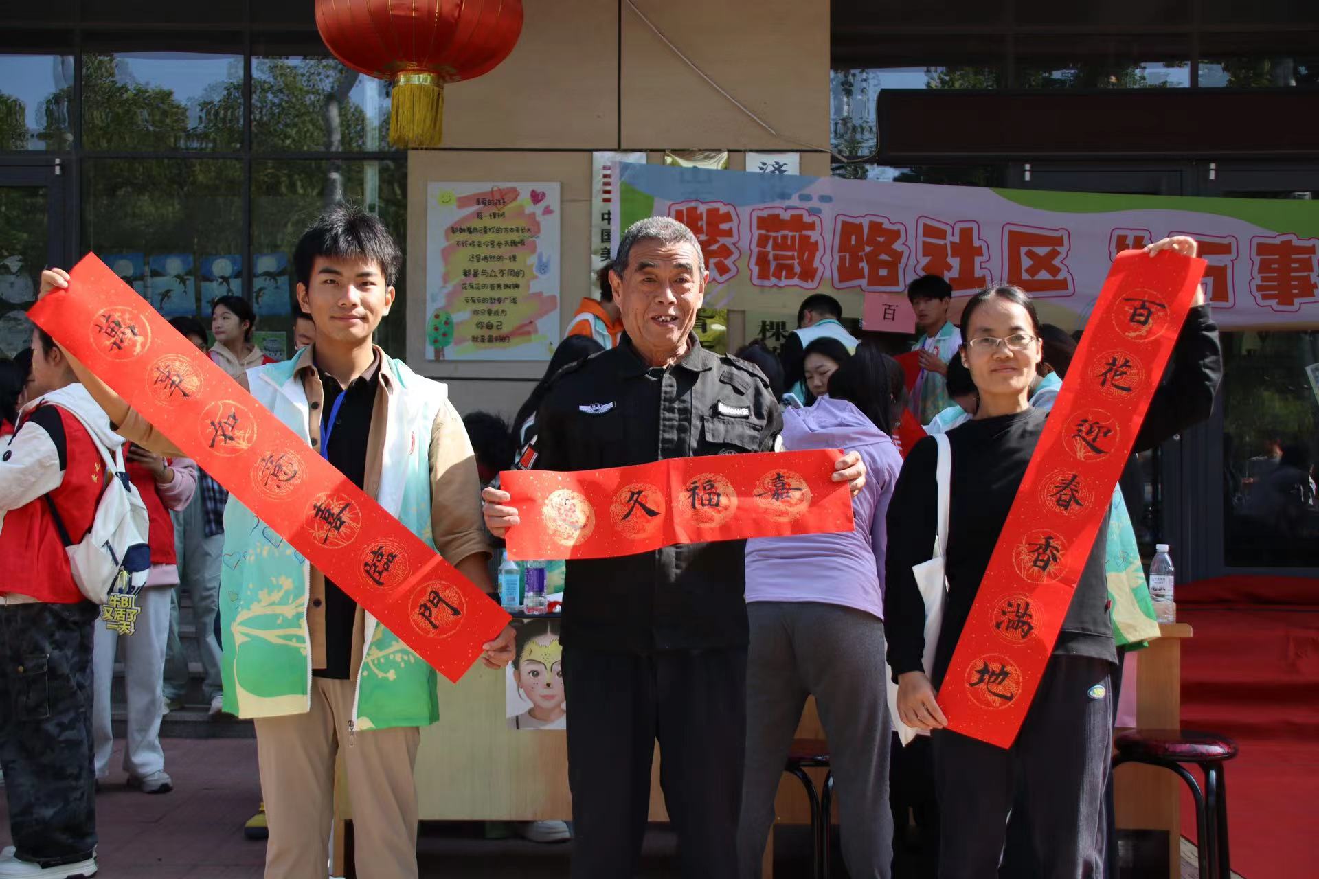 對(duì)聯(lián)送祝福活動(dòng)中,服務(wù)隊(duì)成員與社區(qū)居民一起揮灑筆墨,紅色的對(duì)聯(lián)紙和黑色的水墨匯聚形成的一幅幅對(duì)聯(lián),寓意著事事如意、家家戶戶幸福美滿的祝福和期盼。