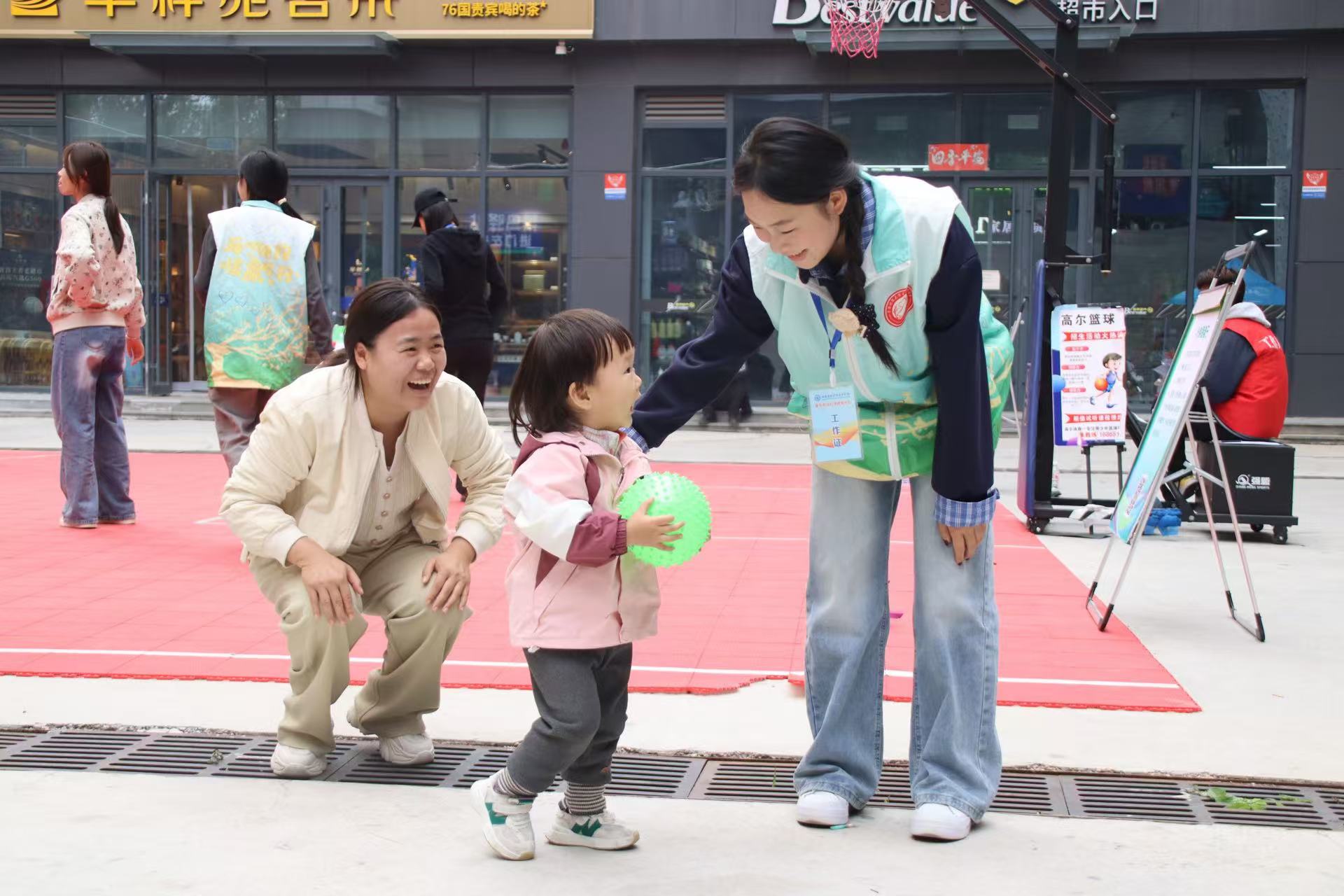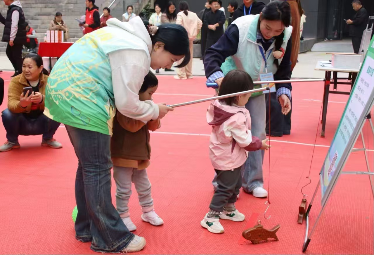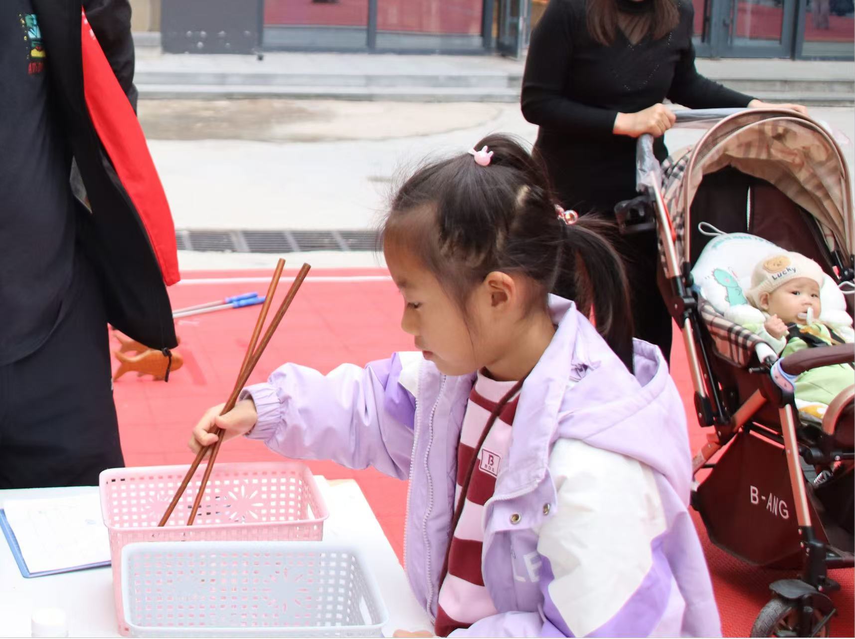 活動(dòng)現(xiàn)場(chǎng)激情四射,熱鬧非凡。社區(qū)兒童和家長們積極參與到各項(xiàng)親子互動(dòng)游戲中,通過1分鐘踢毽子、滾鐵環(huán)和趣味釣魚等輕松有趣的傳統(tǒng)游戲,孩子們?cè)谟螒蛑杏掠趪L試,不斷突破自我,家長們紛紛回憶起自己的童年時(shí)光,與孩子們一同分享這份快樂。在1分鐘乒乓球比賽環(huán)節(jié),孩子們小心翼翼地夾起乒乓球,專注的神情十分可愛,在家長的支持與陪伴下獲得一次次成功,目光中流露出喜悅與自豪。