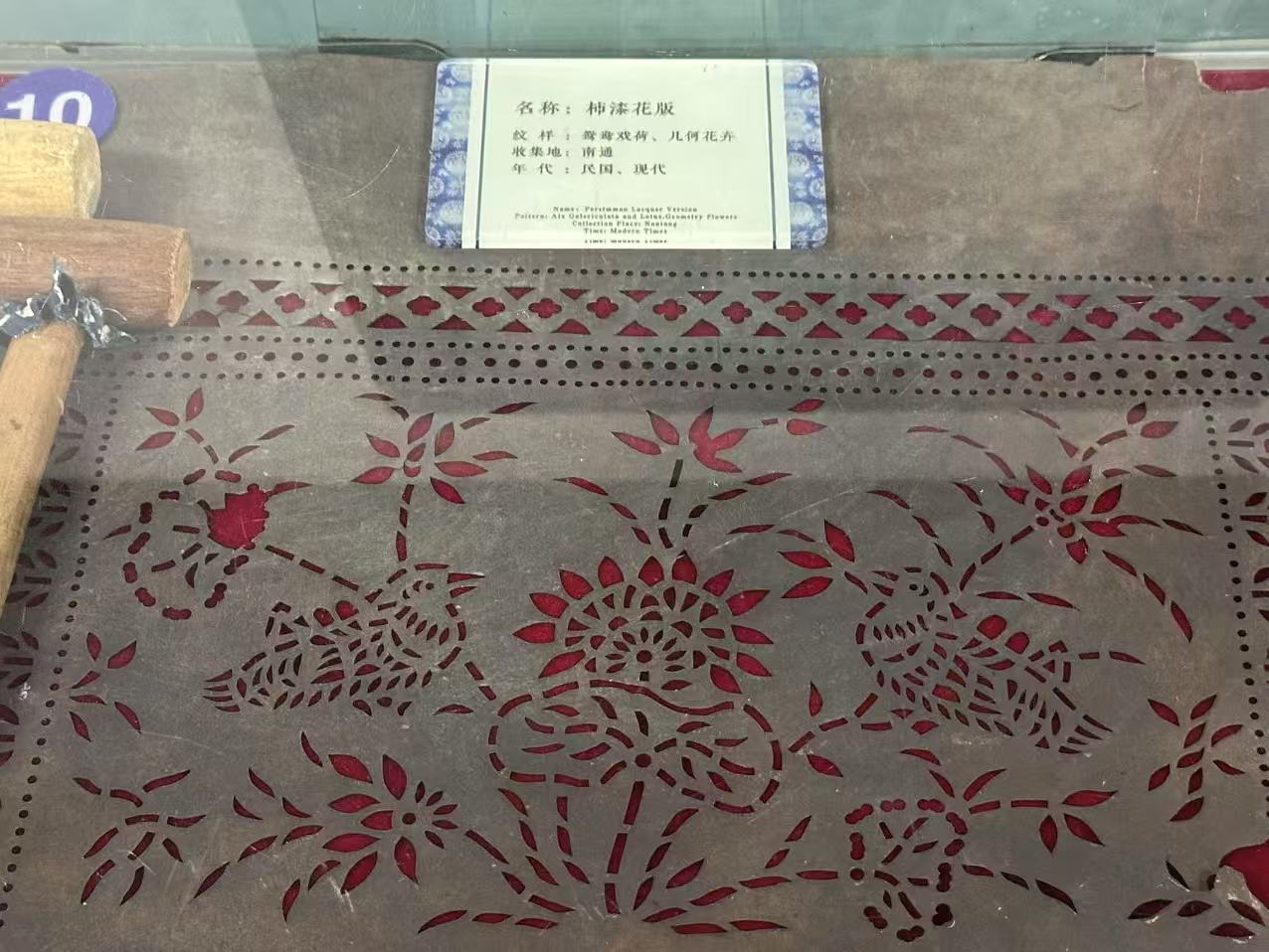 在制作工藝展示區(qū),于悅?cè)辉敿?xì)觀察了藍(lán)印花布的制作流程,從設(shè)計(jì)紋樣到最終晾曬,每一步都凝聚著工匠的智慧。她親身體驗(yàn)了刻版過程,感受到其中的細(xì)膩與精準(zhǔn),并見證了布料由白變藍(lán)的神奇變化,深入了解藍(lán)草染料的提取與應(yīng)用。
