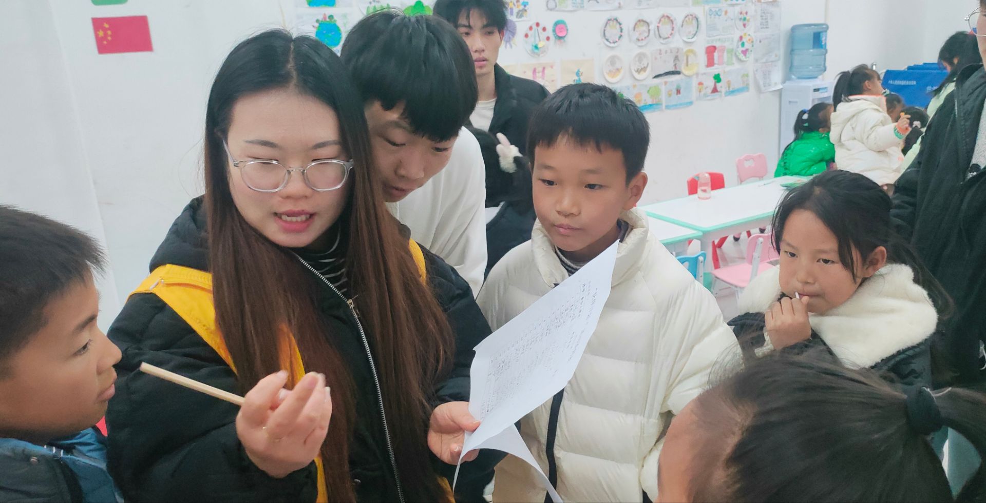 在教育支援環(huán)節(jié),實踐團(tuán)隊充分發(fā)揮自身專業(yè)優(yōu)勢,精心設(shè)計并開展了一系列豐富多元的教育活動。在英語課堂上,實踐成員摒棄傳統(tǒng)的枯燥教學(xué)模式,而是采用趣味盎然的游戲與互動方式,比如單詞接龍、情景對話模擬等,讓孩子們在輕松愉悅的氛圍中學(xué)習(xí)英語單詞和日常對話。不少孩子從最初對英語的陌生與畏懼,逐漸轉(zhuǎn)變?yōu)榉e極主動參與課堂互動,臉上洋溢著收獲知識的喜悅。