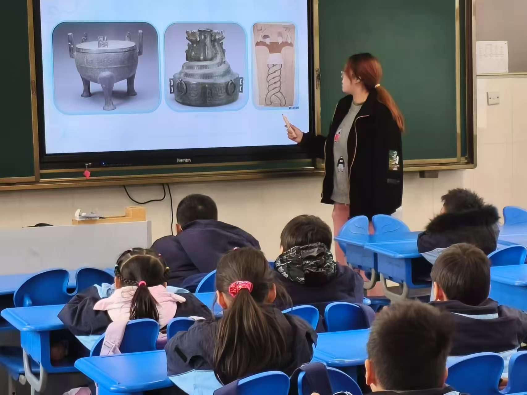 教學(xué)過程中,志愿者們采用多種創(chuàng)新教學(xué)方法,將抽象的生肖文化知識(shí)生動(dòng)地呈現(xiàn)給孩子們。講解生肖蛇知識(shí)時(shí),通過展示精美的插畫、播放有趣的動(dòng)畫,讓孩子們仿佛穿越時(shí)空,走進(jìn)神秘的生肖故事世界,對蛇的形象有了更深刻的印象。在介紹蛇文化在古今的應(yīng)用時(shí),志愿者對比展示古代的蛇紋青銅器、圖騰中的蛇形象,以及現(xiàn)代的蛇形玩偶、文創(chuàng)產(chǎn)品等,讓孩子們直觀感受到蛇文化的傳承與發(fā)展。課堂上,孩子們積極參與討論,思維碰撞出智慧的火花,充分體現(xiàn)了生肖文化教育對啟發(fā)孩子思維的積極作用。