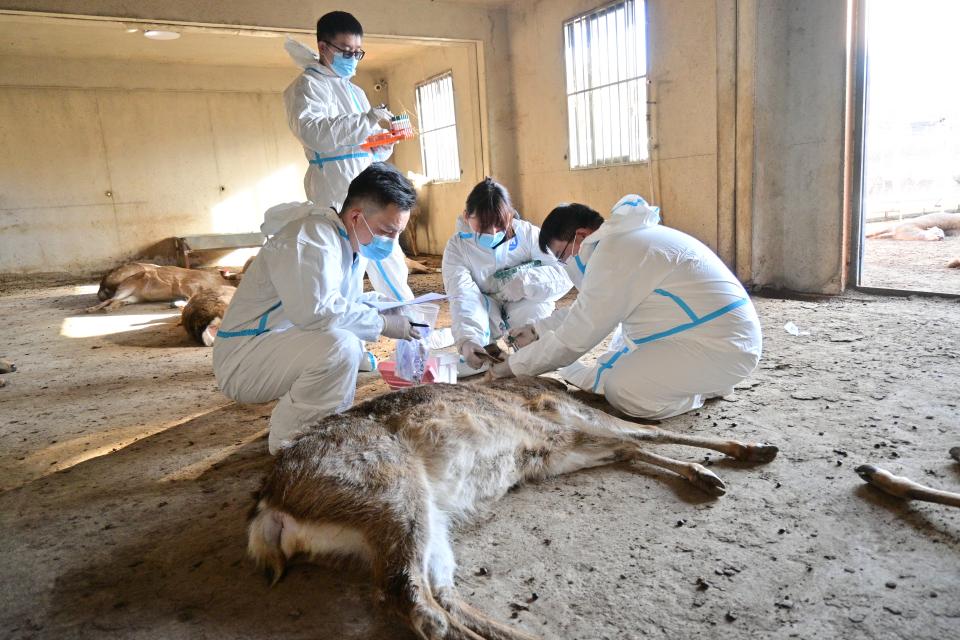 (圖為立竿“檢”影調(diào)研團(tuán)進(jìn)行疫病檢測(cè)工作 韓在勇供圖)