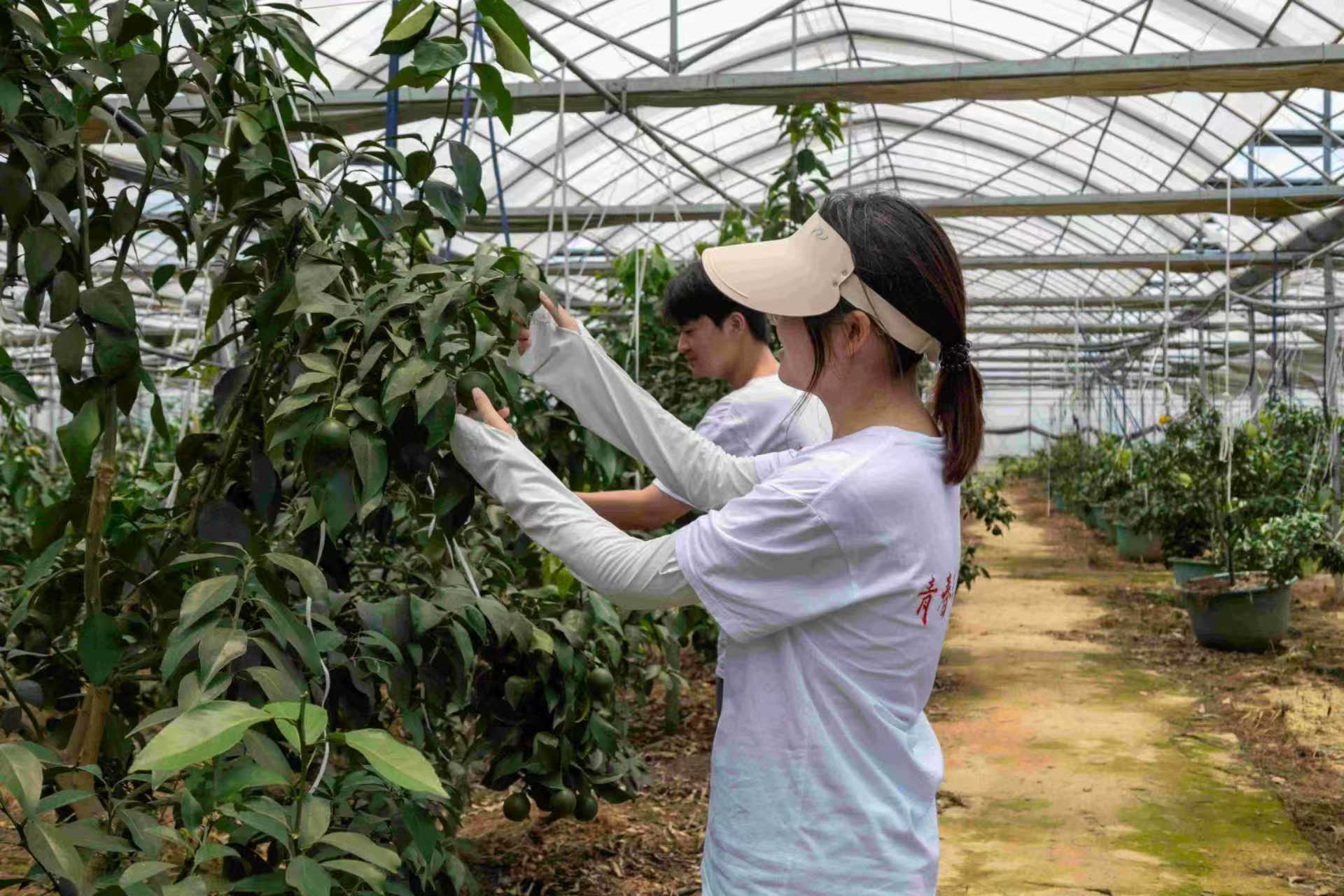 在梁崗村特色種植基地,團隊實地調(diào)研了采用大棚栽培、物聯(lián)網(wǎng)技術(shù)精細化管理的紅美人柑橘,以及仿野生環(huán)境種植的鐵皮石斛。隊員們詳細了解了品種特性、技術(shù)應(yīng)用及市場情況,并進行專業(yè)影像記錄。