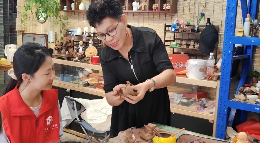 工作室的趙敏老師現(xiàn)場指導(dǎo)團(tuán)隊(duì)成員嘗試了泥塑過程的操作,從摔泥、搓泥條、揉合、塑形,到捏制泥塑,并提到學(xué)習(xí)泥塑貴在堅(jiān)持。親手制作泥塑的過程讓隊(duì)員們切身感受到非遺手藝的非凡匠心和傳統(tǒng)技藝的獨(dú)特魅力。