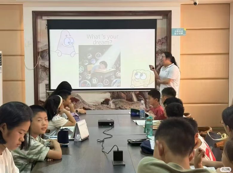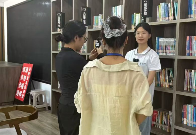 首先,實踐團(tuán)在郎川書屋開展主題為“我的夢想”的英語聽說課程。課堂上,團(tuán)隊成員引導(dǎo)孩子們用英語分享理想,并通過趣味互動環(huán)節(jié)耐心糾正發(fā)音、拓展句式,將英語學(xué)習(xí)融入童真夢想,有效激發(fā)了鄉(xiāng)村孩子的學(xué)習(xí)熱情。接著,郎溪縣電視臺記者深入課堂記錄教學(xué)場景,并對團(tuán)隊隊長黃紫薇進(jìn)行了專訪。采訪中,黃紫薇闡述了團(tuán)隊組建初衷是響應(yīng)學(xué)校號召,為鄉(xiāng)村兒童傳遞知識;分享了團(tuán)隊在成員篩選、需求調(diào)研以及設(shè)計“知識+趣味”課程等籌備過程中的精心打磨;并強(qiáng)調(diào)了實踐初心在于幫助孩子們接觸多元知識、拓展視野,以及傳遞“努力就有無限可能”的信念。她特別提到,看到孩子們從不敢開口到主動用英語分享夢想的轉(zhuǎn)變,讓團(tuán)隊深感支教的價值不僅在于知識傳授,更在于點燃求知火種、建立學(xué)習(xí)信心。