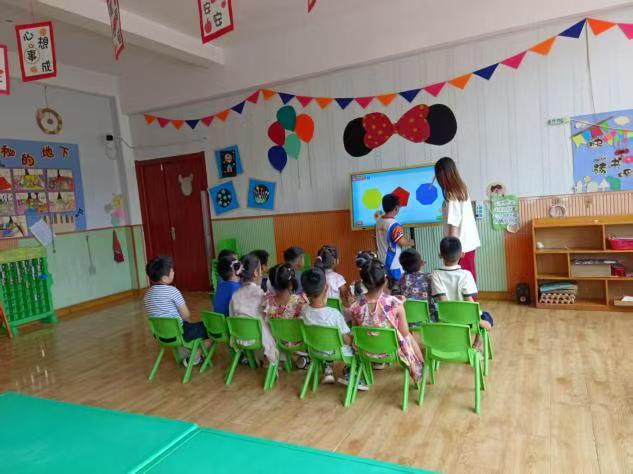 圖為志愿者教小朋友認(rèn)識(shí)多邊形場(chǎng)景。 馬玉潔 供圖