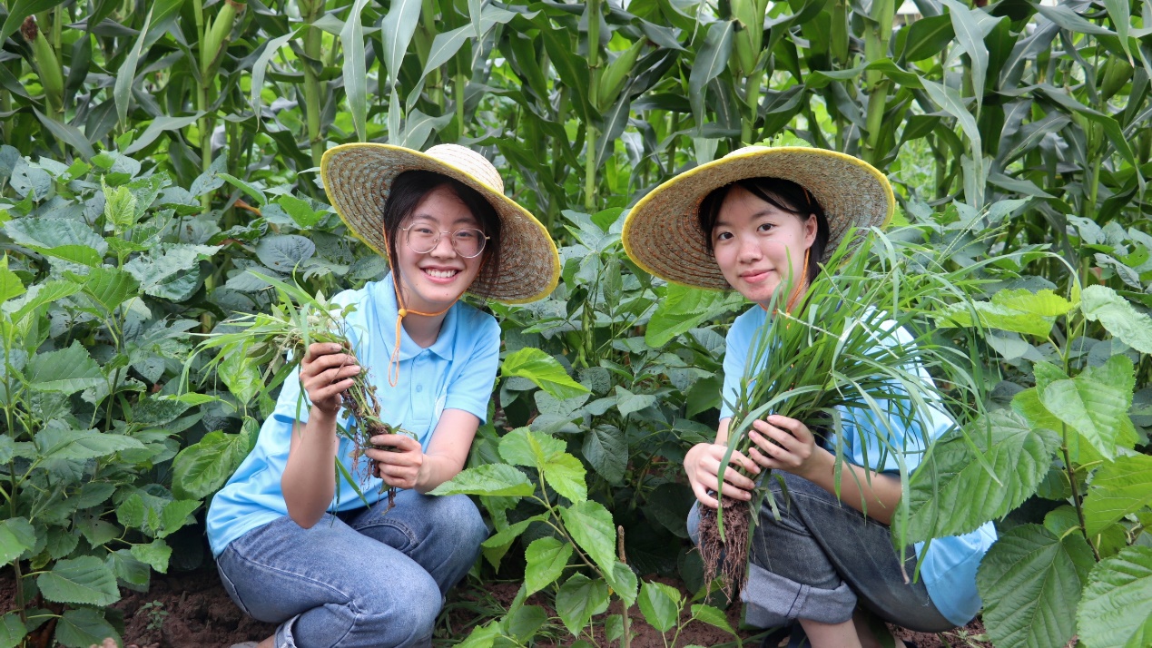 為迅速了解當(dāng)?shù)厣a(chǎn),團(tuán)隊(duì)成員們深入特色間種農(nóng)田。農(nóng)戶將玉米、大豆、桑樹間種,運(yùn)用科學(xué)智慧,提高經(jīng)濟(jì)效益。志愿者們積極投身除草勞作,迎著細(xì)雨,俯身彎腰,細(xì)心清除田間的雜草,親身體會(huì)到了農(nóng)業(yè)生產(chǎn)的辛勞與不易。這不僅是一次體力勞動(dòng),更是一堂生動(dòng)的農(nóng)耕文化實(shí)踐課,志愿者們既能深刻理解“粒粒皆辛苦”的內(nèi)涵,同時(shí)也對(duì)當(dāng)?shù)剞r(nóng)業(yè)有了進(jìn)一步的實(shí)際認(rèn)知,為進(jìn)一步實(shí)現(xiàn)鄉(xiāng)村振興提供了實(shí)踐基礎(chǔ)。