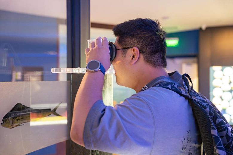 圖為實踐隊伍在館內(nèi)學(xué)習(xí)捕魚作業(yè)知識 潘弈攝