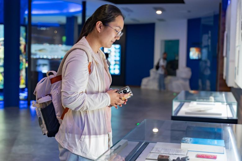 漁家生活展區(qū)陳列著服飾、酒肆器具等展品,小分隊的成員們從中感悟漁民“以海為田、以船為家”的生存哲學(xué)。當(dāng)背景音響起悠揚的漁家號子時,有人輕聲哼唱,現(xiàn)場彌漫著對傳統(tǒng)漁文化的溫情共鳴。